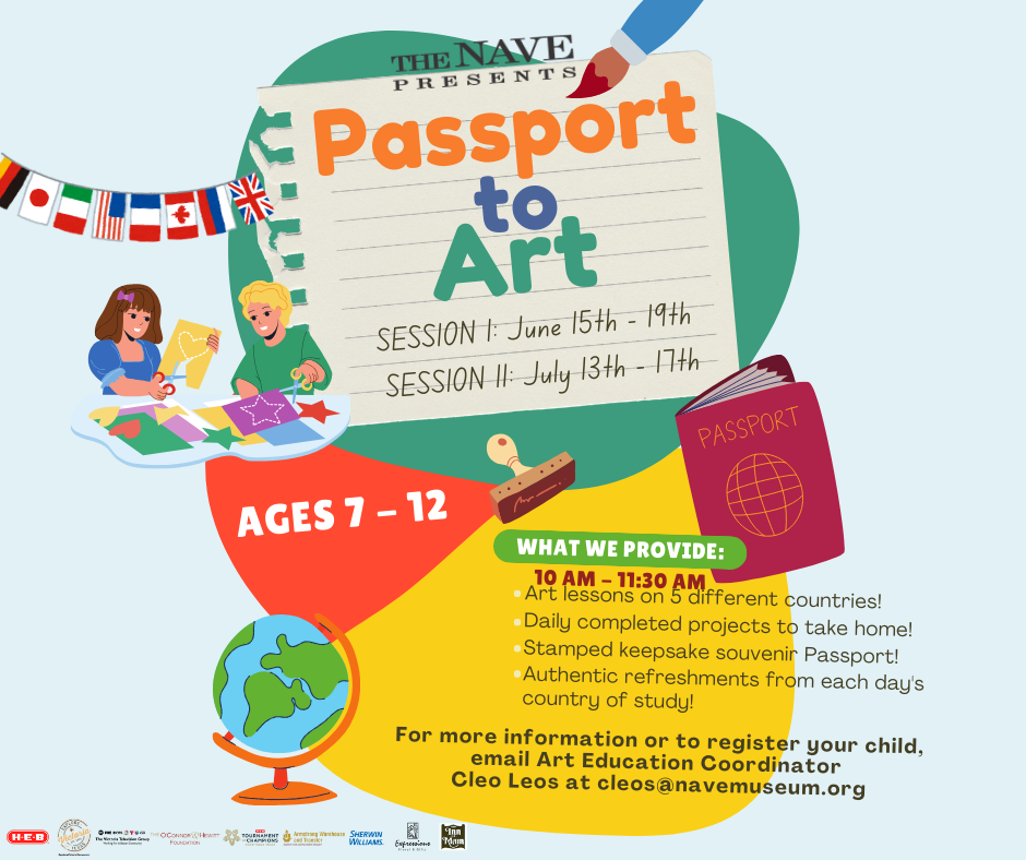 Join us at the Nave Museum for an educational art journey around the world! Kids will learn about the art and culture of a variety of countries. Fun activities based on each culture's art await, as well as authentic snacks from each country every day! Register for one session or both!
