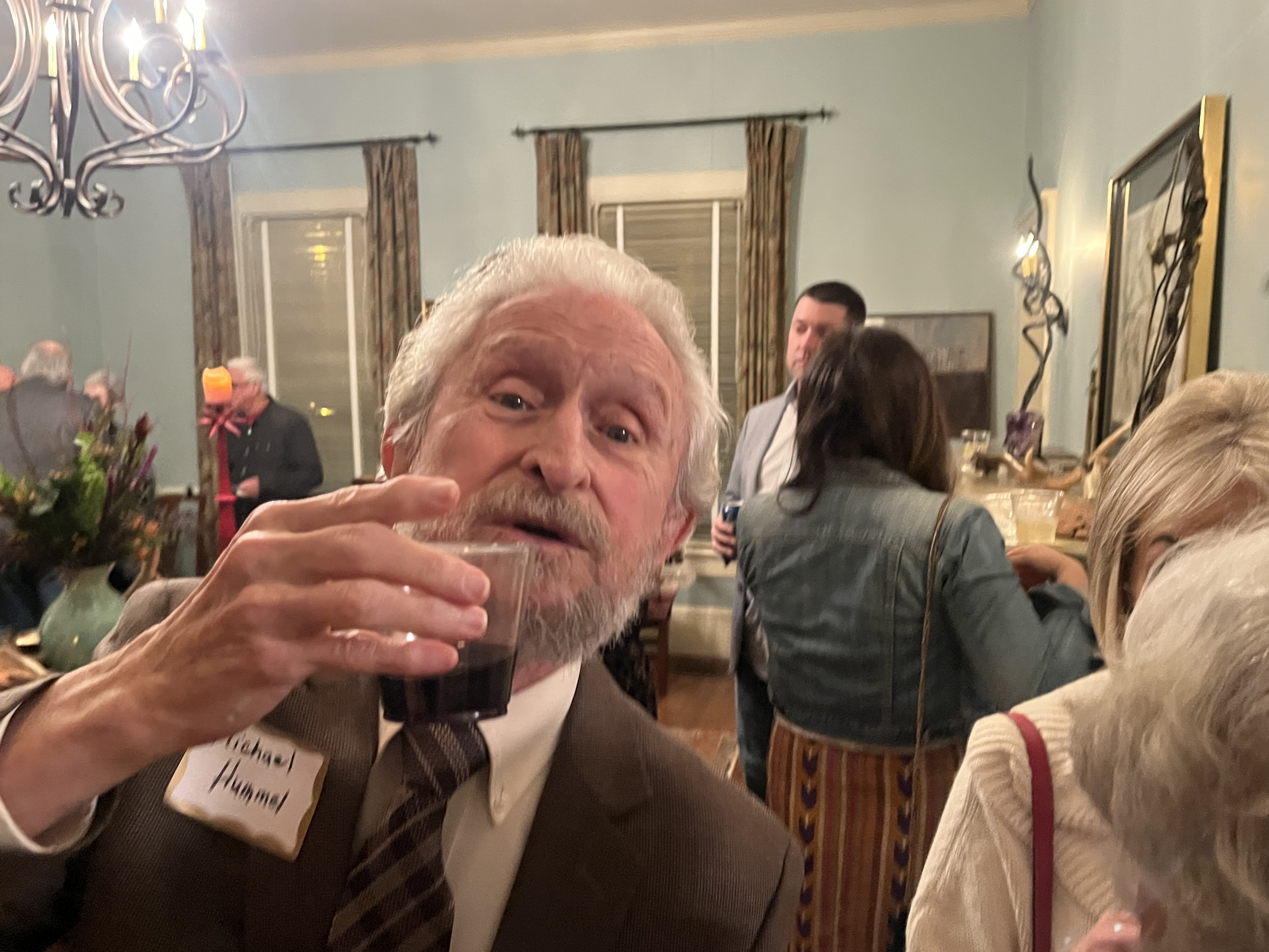 The Nave’s first attempt at a smaller, more intimate fundraiser gathering was by all accounts a great success! A total of 25 attendees were present to enjoy guest wine expert Brendan Owens’ informative and entertaining education on five “Bold Reds from Around the World” and accompanying heavy hors d’oeuvres while placing silent auction bids for five donated artwork pieces.