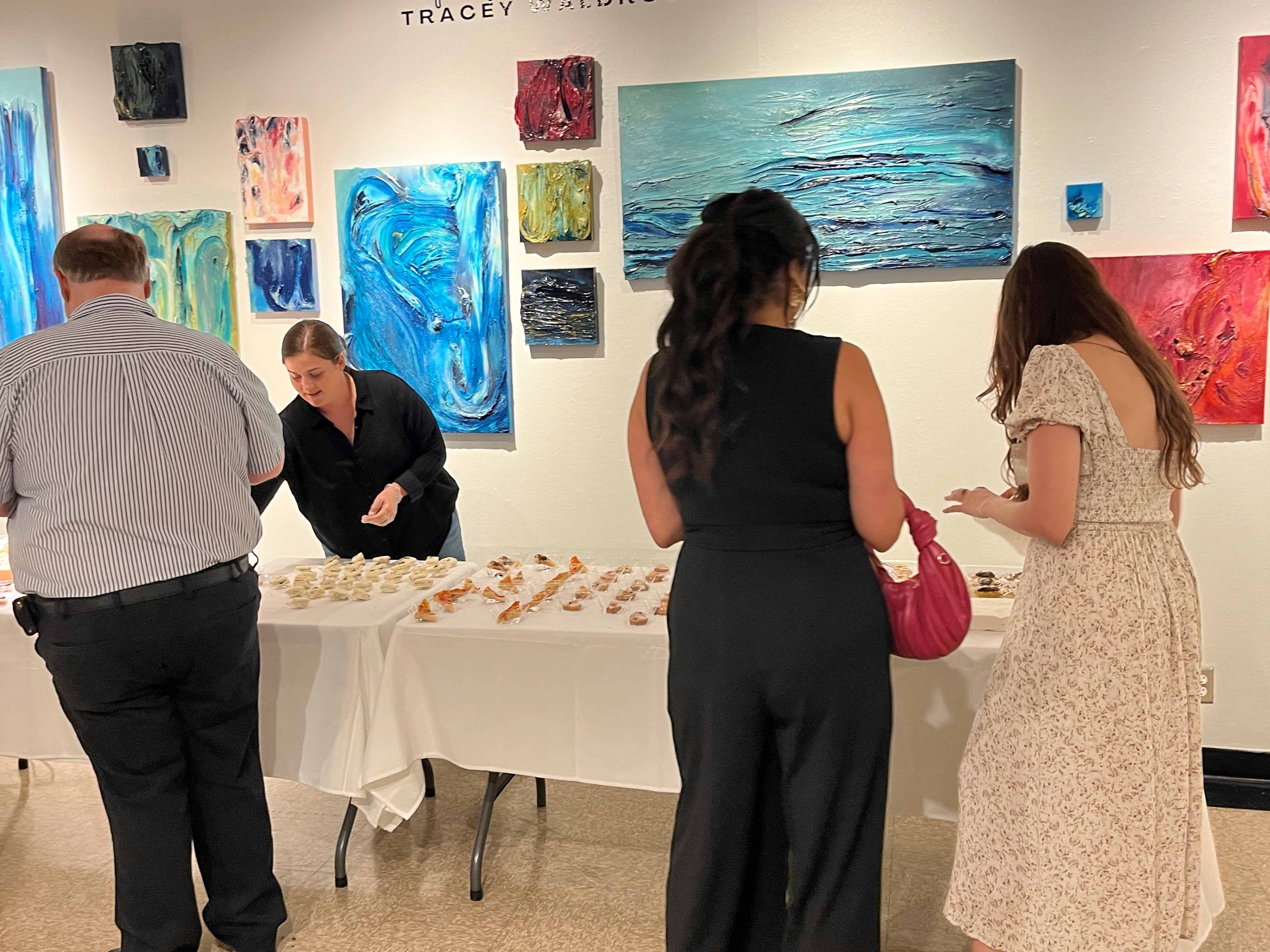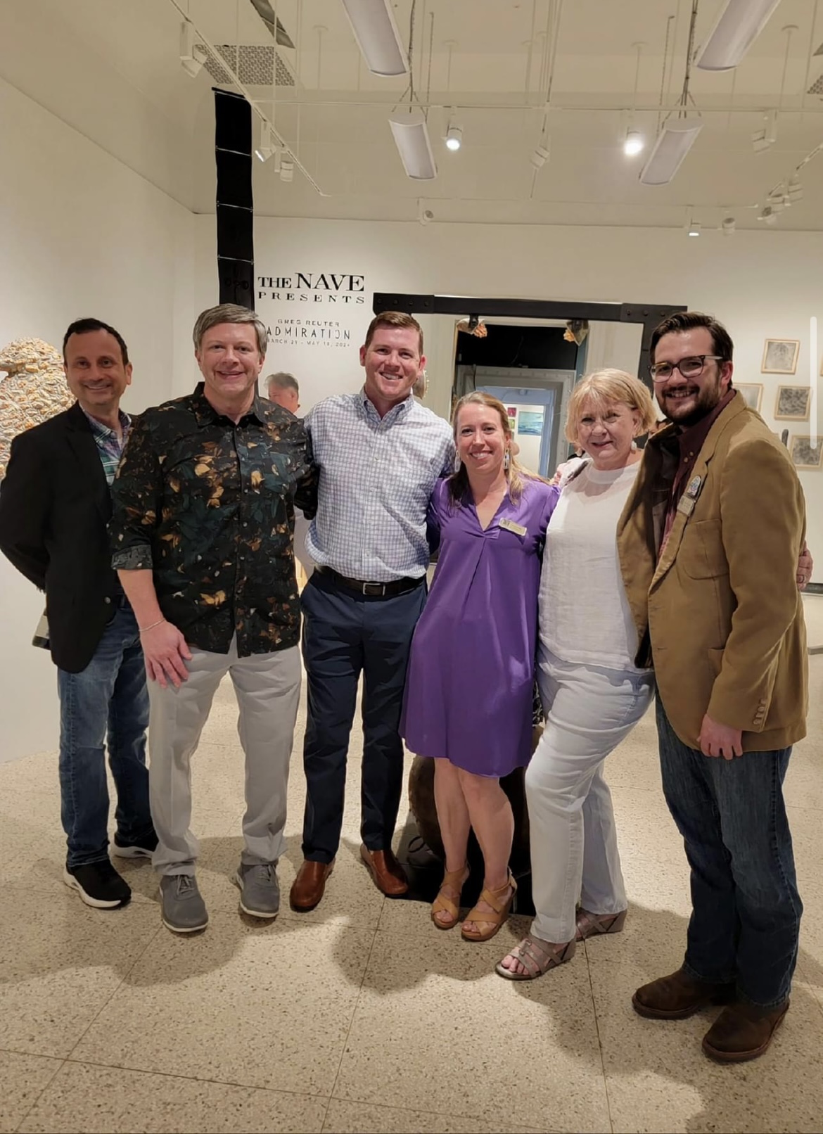 The Member Preview Event & Patron Party for the current double exhibits, "ADMIRATION" by sculptor Greg Reuter and "Unfolding" by painter Tracey Waldroup, proved to be yet another extraordinary evening at the Nave, as Reuter's other-worldly sculptures and Waldroup's rainbow-like acrylic and silicone paintings established two distinct ambiances in each gallery, both enchanting and thought-provoking in their own unique way. The gracious Patron Party hosts, Dr. Jeffrey and Mrs. Nina DiLeo, provided an exceptional location in their lovingly-maintained historic home, complemented by the delectable catering by Ryan Ybarbo, showcasing the hospitality of our members and the professionalism of our service providers, leaving us eagerly awaiting the next Member Preview & Patron Party on Thursday, June 6th!