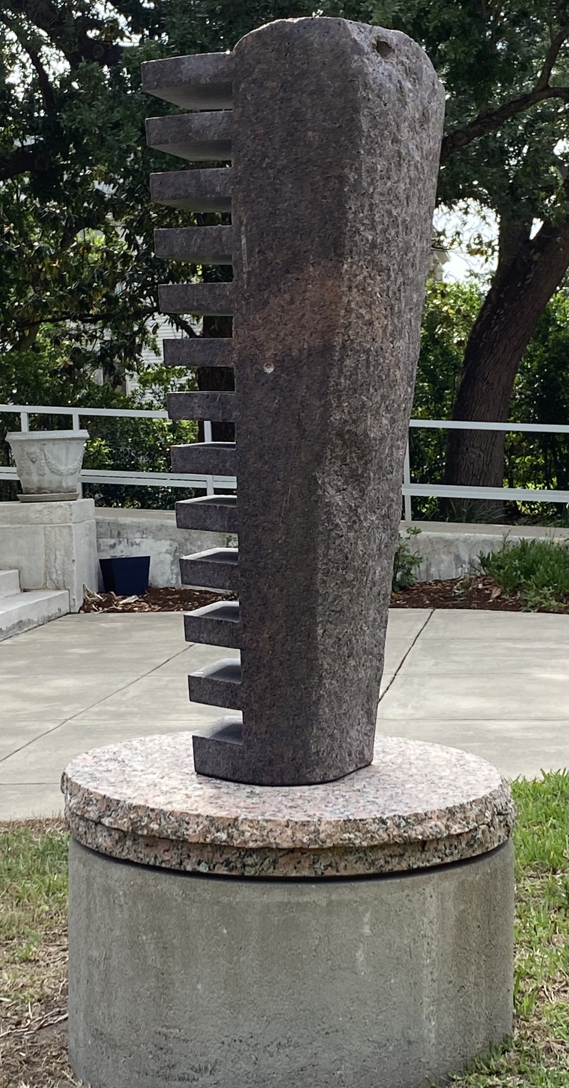 Also found on the museum grounds is a marble sculpture by Dallas artist, Jesus Moroles, donated by his estate. Mr. Moroles’ art is currently displayed at the Dallas Museum of Art, the Modern Art Museum of Fort Worth, the Museum of Contemporary Art in Osaka, Japan, the Museum of Fine Arts in Houston, The Museum of Fine Arts in Santa Fe, and the Smithsonian American Art Museum. Mr. Moroles’ sculptures have been included in over three hundred museum and gallery exhibitions worldwide.